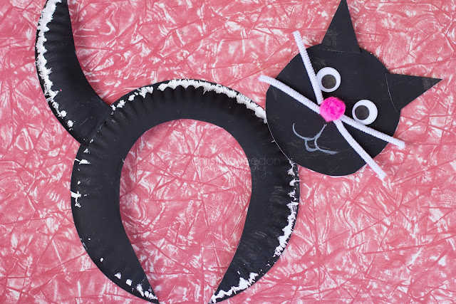 A papírtányér mindig nagyon megkönnyíti az alkotást – ennél a cicusnál is jó szolgálatot tesz. Felakasztva kedves ajtó-, vagy ablakdísz válhat belőle.