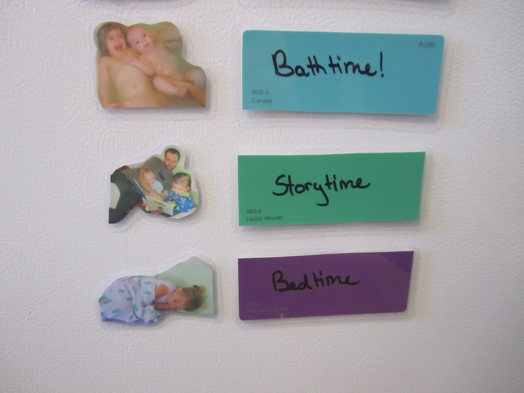 Ez itt egy saját fotókból készített mágneslapokra ragasztott napirend, amit akár a hűtőre is felrakhattok.