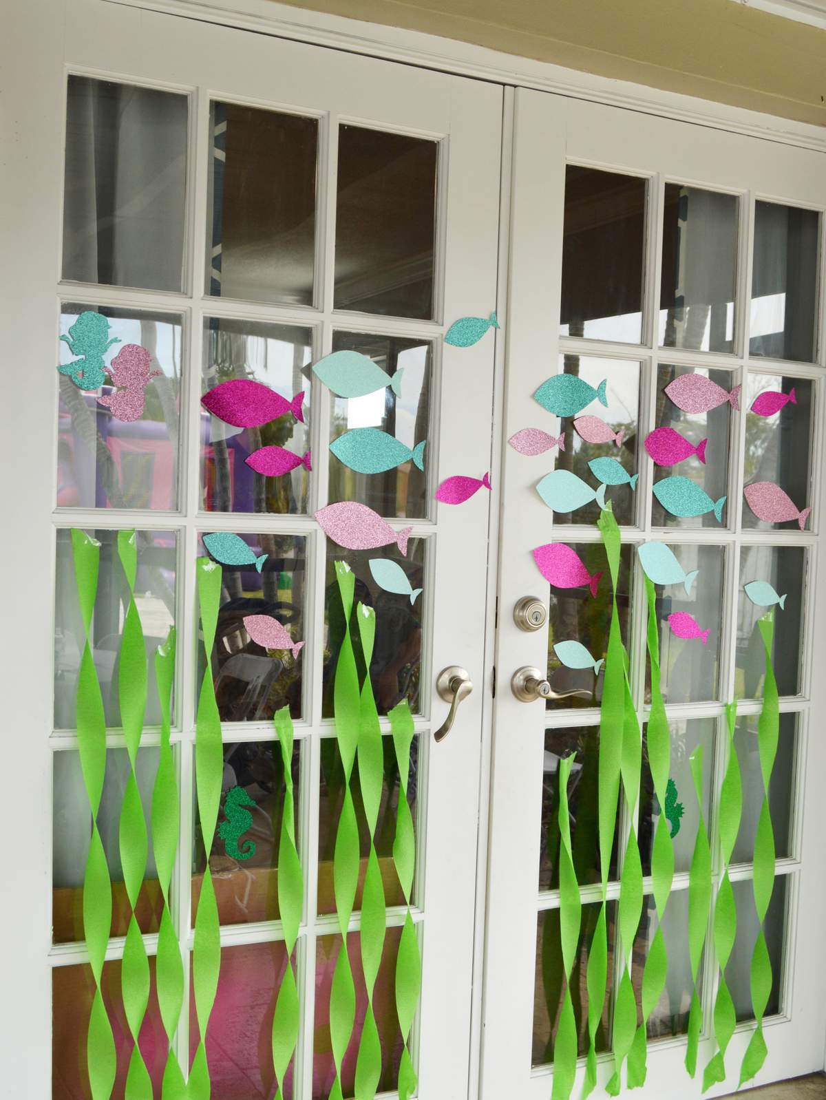 A sellős szülinap dekorációit akár közösen is készíthetitek a kis ünnepelttel. Halacskákat bármilyen színes kartonból kivághattok, a vízi növények pedig egyszerű krepp-papírból készülhetnek – egy kicsit megcsavarva felragaszthatjátok átlátszó ragasztószalaggal.