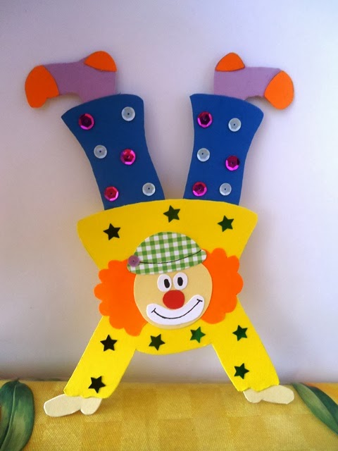 Ha egyik-másik bohócnál kicsit máshogyan helyezitek el a testrészeket, még érdekesebb lesz a dekoráció:
